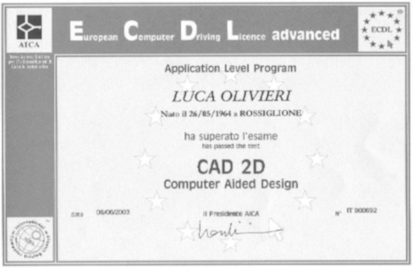 Sono certificato come esaminatore ECDL CAD, Esperto 3D & RENDERING